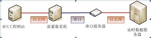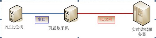 通過串口與上位機通信,需要在PLC上位機中安裝紫金橋遠程IO數(shù)采程序。紫金橋遠程IO數(shù)采程序是紫金橋公司特意為這種安全采集而開發(fā)的,程序本身很小,經(jīng)過了嚴格的測試,不會對系統(tǒng)構(gòu)成任何威脅。紫金橋遠程IO數(shù)采程序在PLC上位機采集到數(shù)據(jù)后,通過上位機的網(wǎng)口將數(shù)據(jù)傳輸?shù)角爸脭?shù)采機。前置數(shù)采機和實時數(shù)據(jù)庫服務器之間通過串口通訊,為了延長通訊距離增加串口服務器。