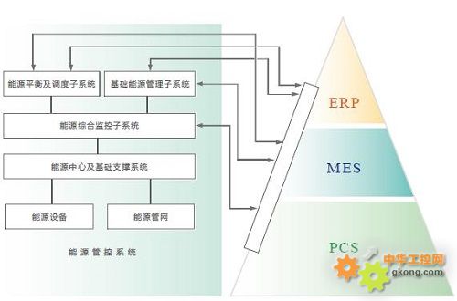 制造業(yè)企業(yè)自動化、信息化一般分為過程控制系統(tǒng)(PCS)、制造執(zhí)行系統(tǒng)(MES)、企業(yè)資源管理系統(tǒng)(ERP)等三個層次。能源管控系統(tǒng)與企業(yè)信息化的關系圖如下圖: