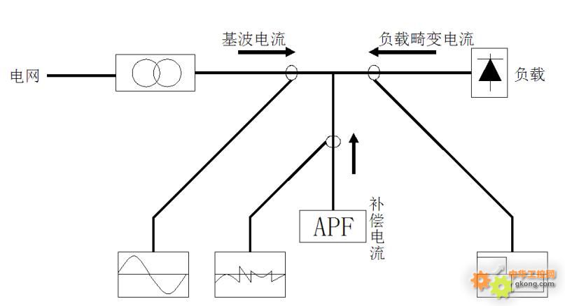 ANAPF系列有源電力濾波裝置,以并聯(lián)方式接入電網(wǎng),通過實時檢測負載的諧波和無功分量,采用PWM變流技術,從變流器中產(chǎn)生一個和當前諧波分量和無功分量對應的反向分量并實時注入電力系統(tǒng),從而實現(xiàn)諧波治理和無功補償。