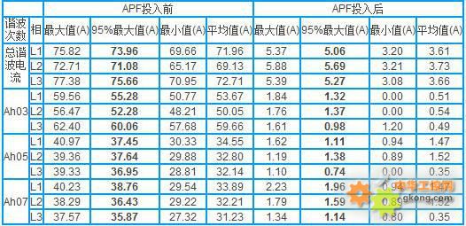 下面以配電室配電變壓器母線處ANAPF有源濾波器投入運行前、后配電系統(tǒng)電能質(zhì)量測試情況的對比分析為例來具體描述。