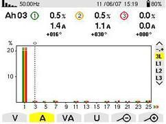 經(jīng)測試,有源濾波器投入前該系統(tǒng)中總諧波電流約75A左右,主要諧波含量為3次、5次、7次,其中3次諧波電流為60A左右,5次諧波電流為40A,投入安科瑞ANAPF100-400/B有源濾波器后,具有顯著的濾波效果,如下為對比圖: