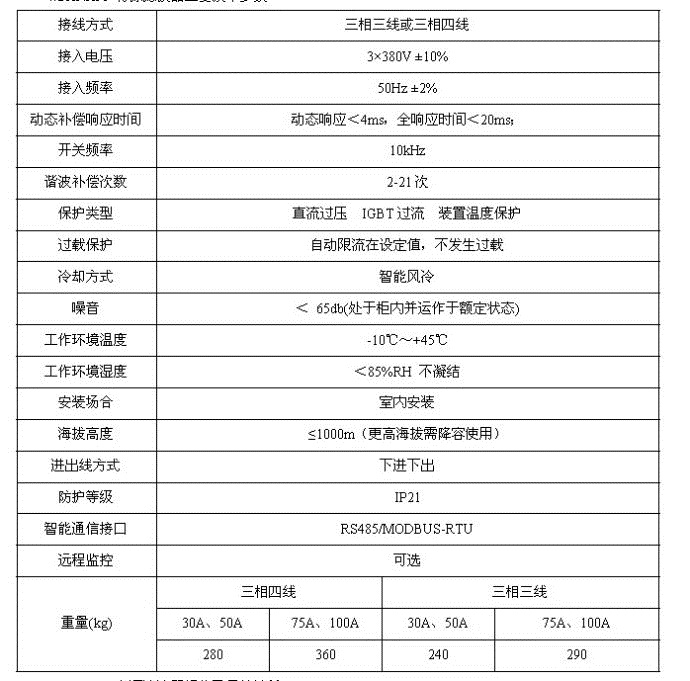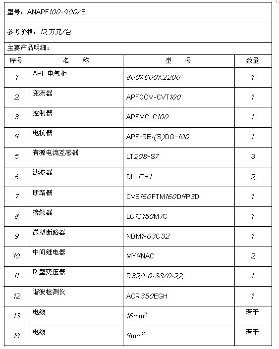4.1 ANAPF有源濾波器主要技術(shù)特點(diǎn) DSP+FPGA全數(shù)字控制方式,具有極快的響應(yīng)時(shí)間 ;先進(jìn)的主電路拓?fù)浜涂刂扑惴,精度更高、運(yùn)行更穩(wěn)定;一機(jī)多能,既可補(bǔ)諧波,又可兼補(bǔ)無功;模塊化設(shè)計(jì),便于生產(chǎn)調(diào)試;便利的并聯(lián)設(shè)計(jì),方便擴(kuò)容;具有完善的橋臂過流、保護(hù)功能;使用方便,易于操作和維護(hù)。 4.2 ANAPF有源濾波器主要技術(shù)參數(shù)