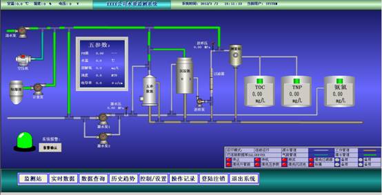 當(dāng)某個環(huán)節(jié)出現(xiàn)故障,或者參數(shù)超標(biāo)時,系統(tǒng)會發(fā)生報警,報警燈閃爍。在畫面的右下角,也顯示著系統(tǒng)當(dāng)前的運行狀態(tài)。