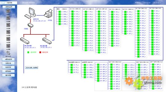 司法中心的值班室位于1#公安局負(fù)一層變配電室旁,配置一臺(tái)工業(yè)網(wǎng)絡(luò)交換機(jī);2#變配電室現(xiàn)場采用13根總線,使用一臺(tái)16口的串口服務(wù)器,通過光纖連接至1#值班室內(nèi)的交換機(jī)上;1#變配電室現(xiàn)場采用13根總線,使用一臺(tái)16口的串口服務(wù)器,連接至值班室內(nèi)的交換機(jī);再通過大樓的局域網(wǎng)把數(shù)據(jù)傳輸?shù)胶笈_(tái)系統(tǒng)。