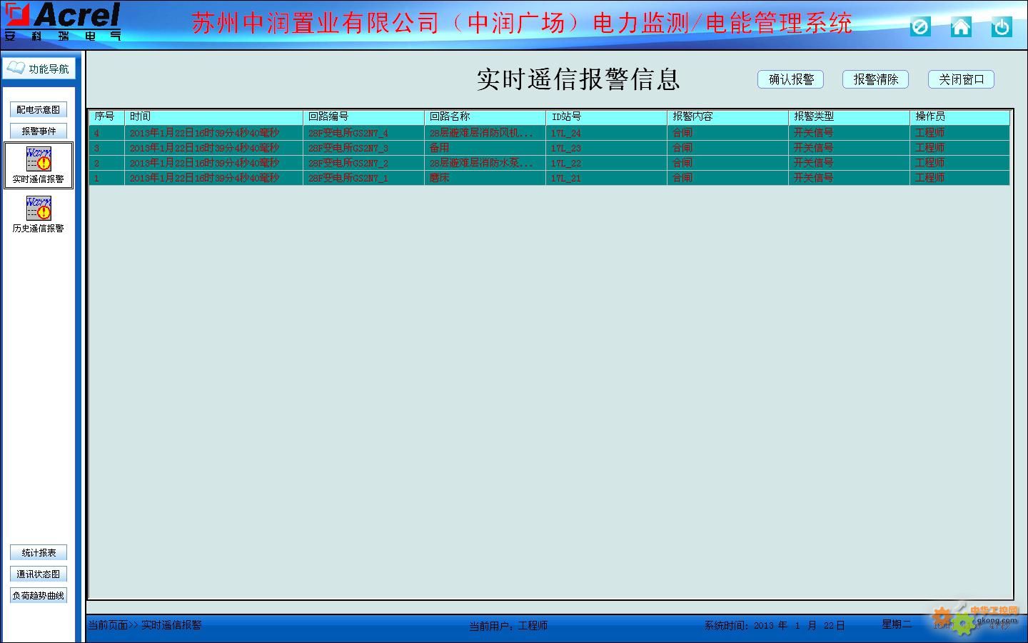 隨著社會的發(fā)展及電力的廣泛應(yīng)用,電力監(jiān)控系統(tǒng)已成為全國各地重點工程項目、標志性建筑/大型公共設(shè)施等大面積多變電所用戶的必然選擇,本文介紹的Acrel-2000/3000電力監(jiān)控與電能管理系統(tǒng)在蘇州中潤廣場的應(yīng)用,可以實現(xiàn)對變電所高低壓配電回路用電的實時監(jiān)控與電能管理,不僅能顯示回路用電狀況,還具有網(wǎng)絡(luò)通訊功能,可以與串口服務(wù)器、計算機等組成電力監(jiān)控系統(tǒng)。系統(tǒng)實現(xiàn)對采集數(shù)據(jù)的分析、處理,實時顯示變電所內(nèi)各配電回路的運行狀態(tài),對分合閘、負載越限具有彈出報警對話框及語音提示,并生成各種電能報表、分析曲線、圖形等,便于電能的遠程抄表以及分析、研究。該系統(tǒng)運行安全、可靠、穩(wěn)定,為變電所用戶解決用電問題提供了真實可靠的依據(jù),取得了較好的社會效益。[2]