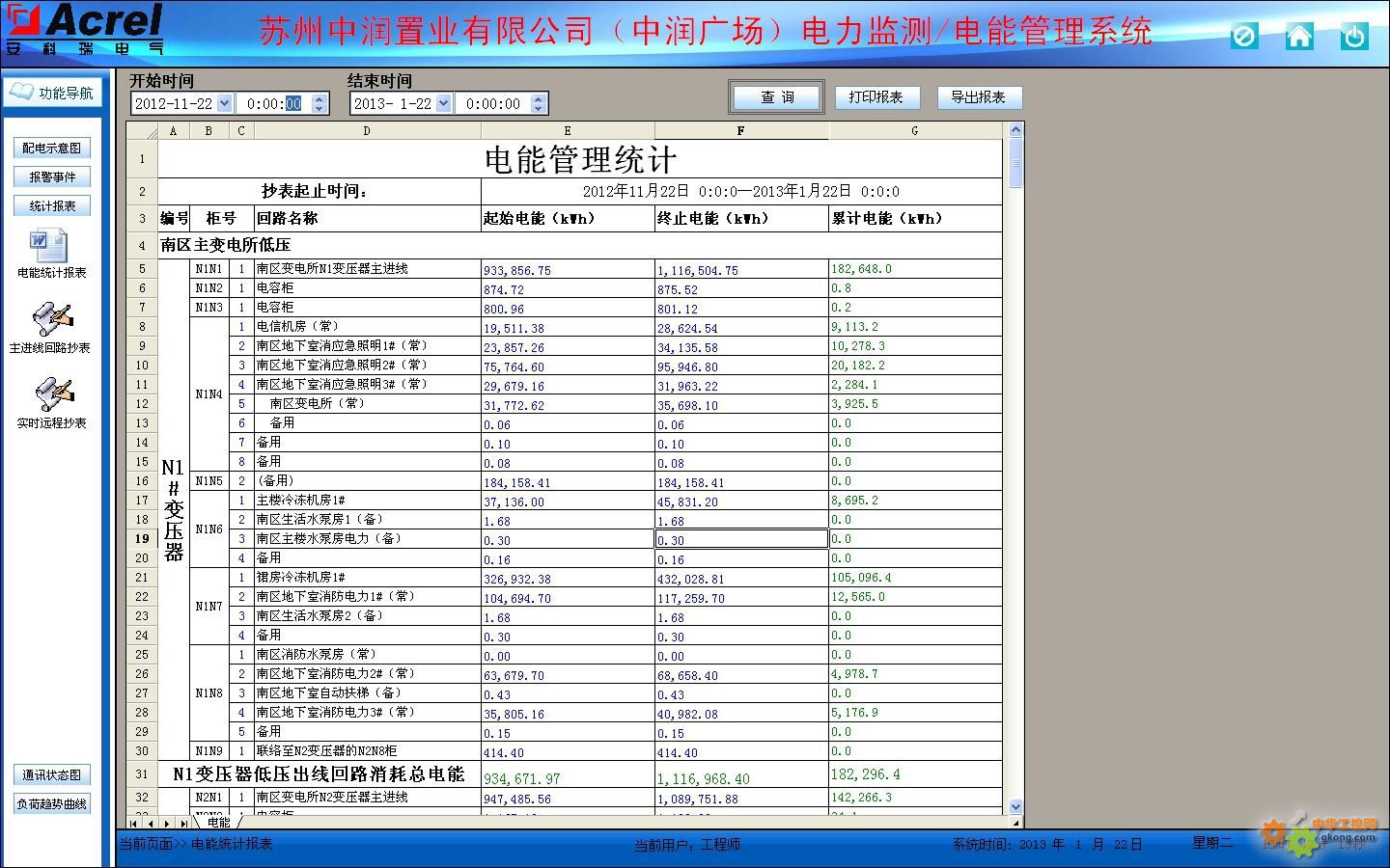 報表具有自由設(shè)置查詢時間實現(xiàn)日、月、年的電能統(tǒng)計,數(shù)據(jù)導(dǎo)出和報表打印等功能。