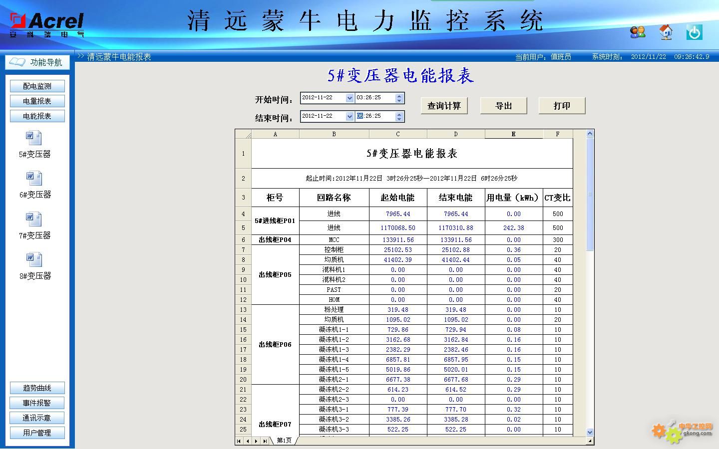 報表具有自由設(shè)置查詢時間實現(xiàn)日、月、年的電能統(tǒng)計,數(shù)據(jù)導(dǎo)出和報表打印等功能。