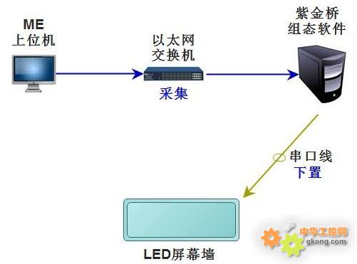 天然氣公司六大隊(duì)南壓淺冷站,主控室修建了一面LED屏幕墻,顯示淺冷站主要工藝流程,同時(shí)顯示10個(gè)關(guān)鍵參數(shù),包括6個(gè)溫度和4個(gè)液位。這10個(gè)數(shù)據(jù)需要從主控室現(xiàn)場(chǎng)的上位機(jī)中采集,并下置到LED大屏幕上。