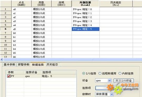 需要下置的點(diǎn)連接組態(tài)完成后,再建立相同個(gè)數(shù)的模擬點(diǎn),用來(lái)采集上位機(jī)的實(shí)時(shí)數(shù)據(jù)。然后使用數(shù)據(jù)庫(kù)周期腳本,將從上位機(jī)采集到的實(shí)時(shí)數(shù)據(jù)周期性賦值給對(duì)應(yīng)的數(shù)據(jù)下置點(diǎn),這樣就實(shí)現(xiàn)了實(shí)時(shí)數(shù)據(jù)的下置,達(dá)到了功能上的要求。