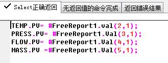 把自由表報的單元格中的數據賦給數據庫中的點FLOW,TEMP,MASS,PRESS的PV值。
