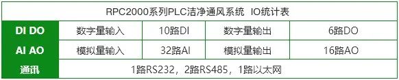 潔凈通風(fēng)系統(tǒng)控制方案中,采用藍(lán)普鋒公司RPC2000系列PLC作為硬件平臺。通過一套PLC,實(shí)現(xiàn)15間負(fù)壓隔離實(shí)驗(yàn)室潔凈排風(fēng)系統(tǒng)的控制功能。CPU模塊自帶數(shù)字量輸入和數(shù)字輸出,通過擴(kuò)展模塊連接模擬量輸入和模擬量輸出,控制系統(tǒng)具體配置如下: