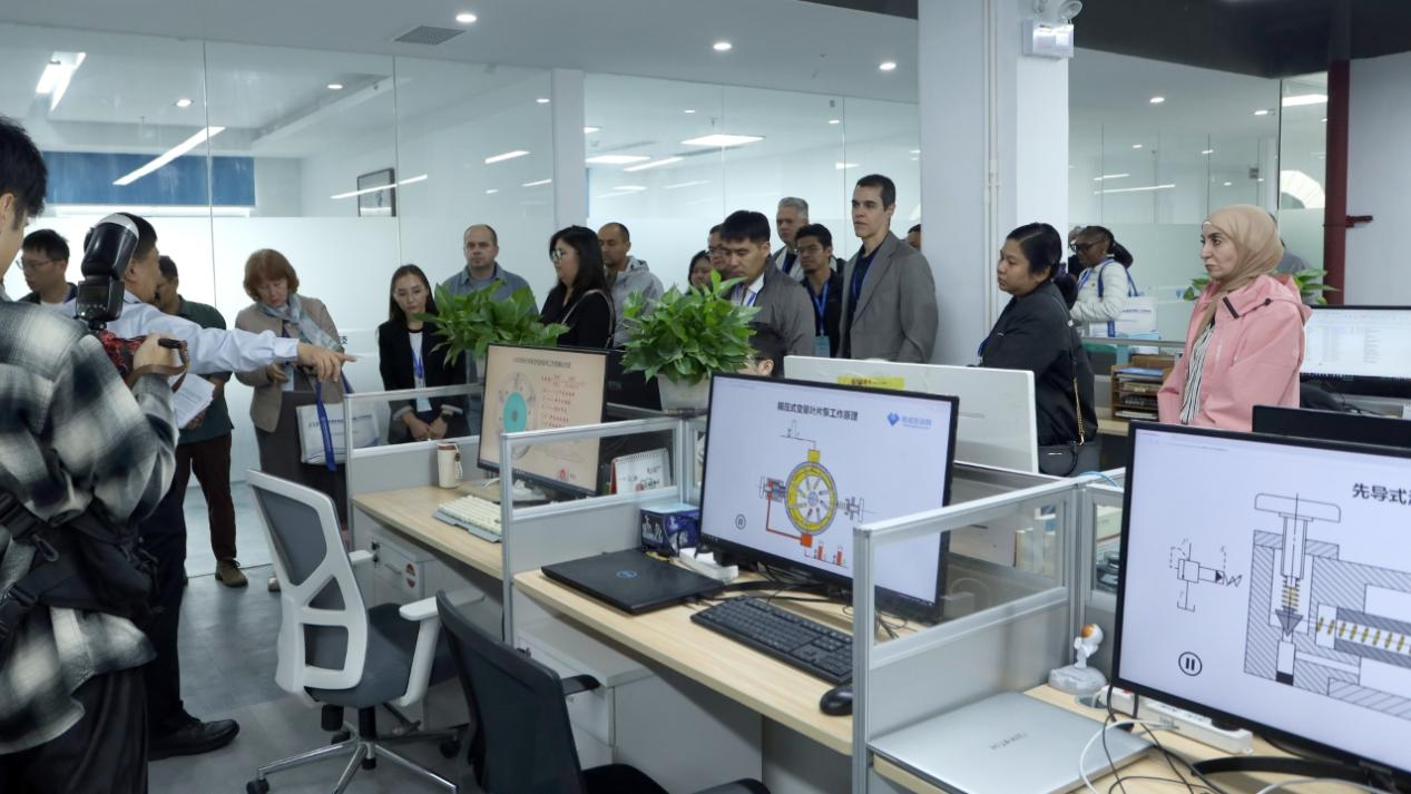 2025 年 10 月 22 日上午,來(lái)自巴西、埃及、俄羅斯、印尼南非等 14 個(gè)金磚國(guó)家的 31 位代表,蒞臨深圳市技成科技有限公司開(kāi)展考察交流活動(dòng)。金磚國(guó)家未來(lái)網(wǎng)絡(luò)研究院、深圳市龍崗區(qū)工業(yè)和信息化局、深圳特區(qū)建工學(xué)校等相關(guān)單位派代表一同參與考察,大家圍繞職業(yè)技能培訓(xùn)合作、制造業(yè)人才培養(yǎng)經(jīng)驗(yàn)共享等核心議題展開(kāi)深度互動(dòng)。