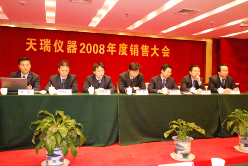 天瑞儀器公司領(lǐng)導(dǎo)與2008年度銷售冠軍、優(yōu)秀大區(qū)經(jīng)理合影留念