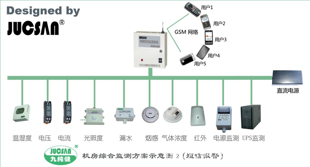 功能簡介:實現(xiàn)對機(jī)房內(nèi)溫濕度、電流、電壓、漏水、煙感、紅外、UPS、電源工作狀態(tài)等信號進(jìn)行采集,并將這些信號連接到短信報警主機(jī)上,實現(xiàn)以短信形式查詢機(jī)房環(huán)境各參數(shù)工作狀態(tài),并以短信形式發(fā)送報警信息。