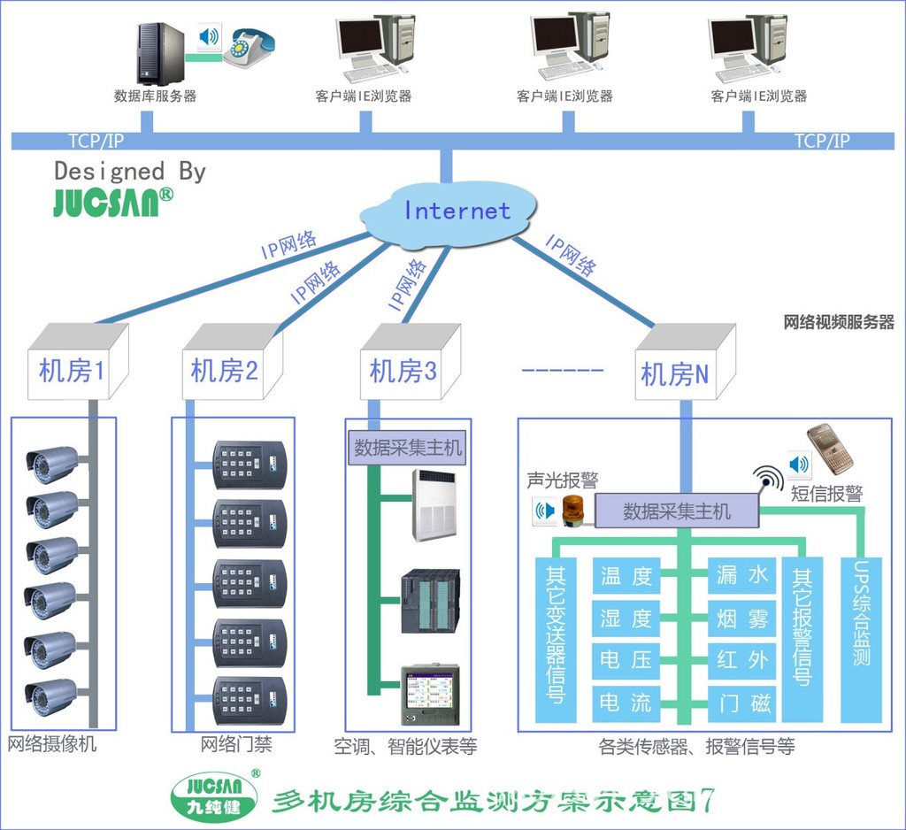實現(xiàn)對大中型機(jī)房的綜合監(jiān)測,包括機(jī)房環(huán)境、視頻、門禁等全面監(jiān)測,并配有專業(yè)機(jī)房監(jiān)控軟件及數(shù)據(jù)庫服務(wù)器?蛻敉ㄟ^IE瀏覽器可以登錄系統(tǒng),并進(jìn)行遠(yuǎn)程管理與控制。