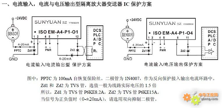 二、電壓輸入,電流與電壓輸出型隔離放大器變送器IC保護(hù)方案