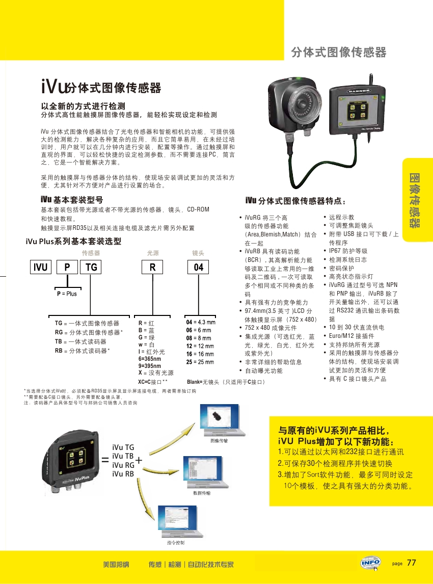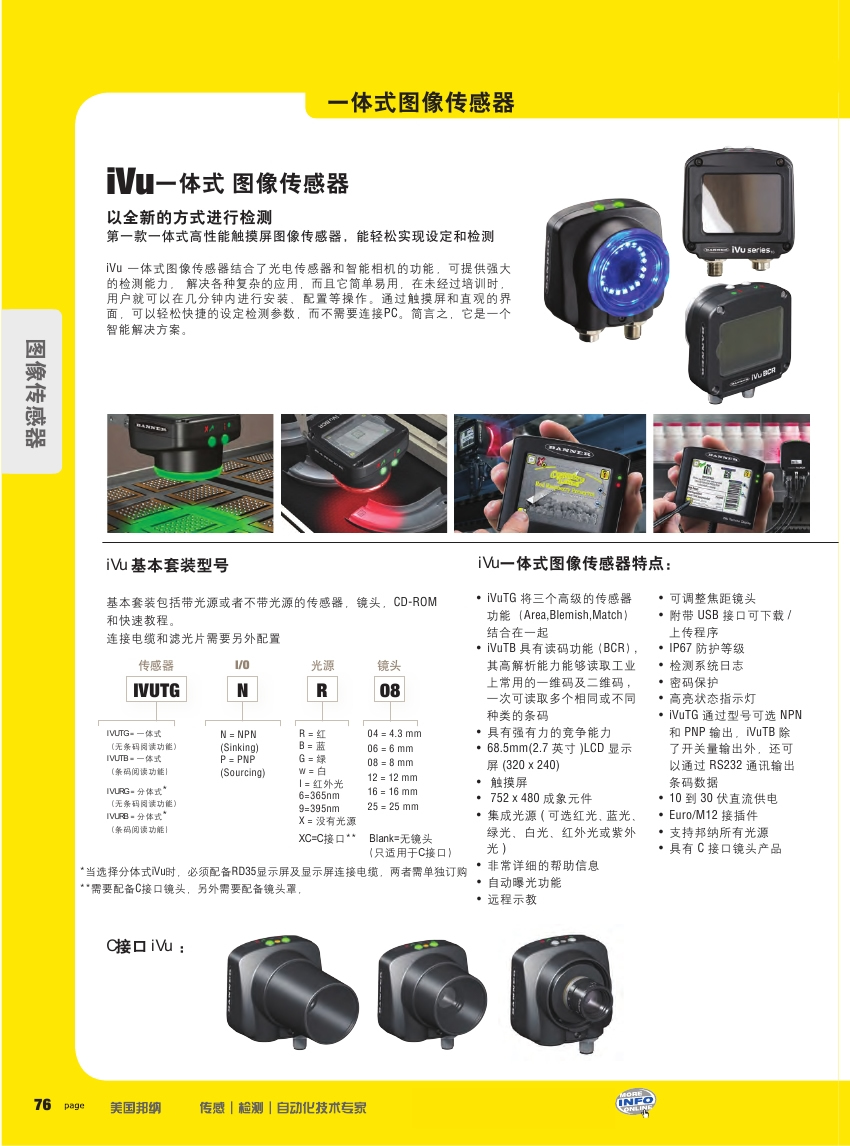 iVu 圖像傳感器結(jié)合了光電傳感器和智能相機的功能,可提供強大的檢測能力, 解決各種復(fù)雜的應(yīng)用,而且它簡單易用,在未經(jīng)過培訓時,用戶就可以在幾分鐘內(nèi)進行安裝、配置等操作。通過觸摸屏和直觀的界面,可以輕松快捷的設(shè)定檢測參數(shù),而不需要連接PC。簡言之,它是一個智能解決方案。