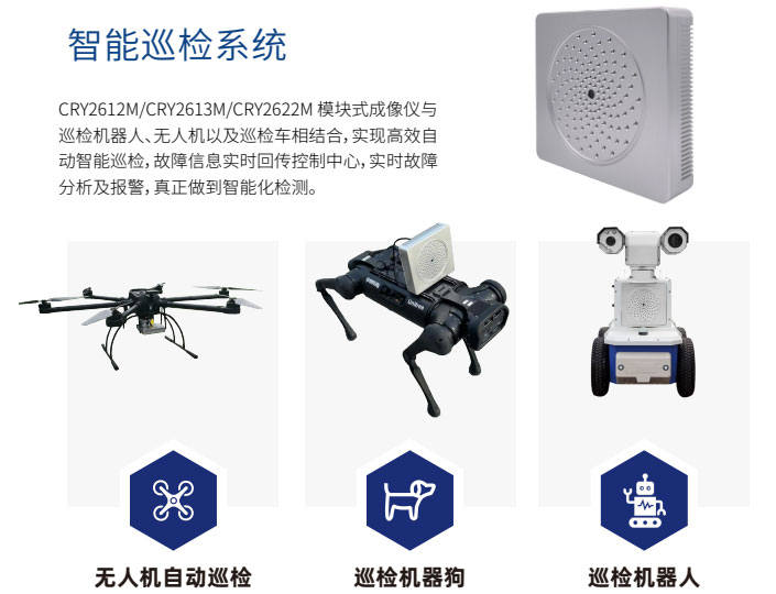 CRY2600M系列模塊式成像儀是面向7X24小時(shí)在線故障監(jiān)測(cè)系統(tǒng)及配合巡檢機(jī)器人、無(wú)人機(jī)等組 成的智能無(wú)人巡檢系統(tǒng)而開(kāi)發(fā)的智能前端。數(shù)據(jù)通信協(xié)議支持RTSP、RTMP及國(guó)標(biāo)接口方便集成。