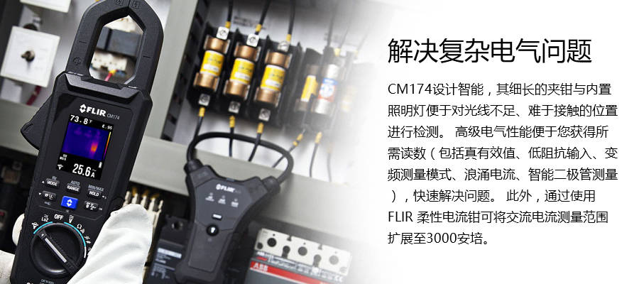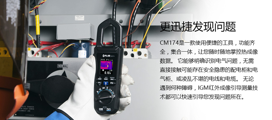 FLIR CM174 600A交流/直流紅外成像數(shù)字鉗形表采用IGM紅外成像引導(dǎo)測(cè)量技術(shù),是世界上首款鉗形表熱像儀二合為一的產(chǎn)品。它能快速引導(dǎo)用戶發(fā)現(xiàn)常規(guī)鉗形表無(wú)法識(shí)別的問(wèn)題。得益于強(qiáng)大的紅外成像引導(dǎo)測(cè)量技術(shù),CM174數(shù)字鉗形表能直觀引導(dǎo)用戶發(fā)現(xiàn)潛在電氣問(wèn)題的精確位置,安全識(shí)別危險(xiǎn)與未知問(wèn)題。借助精確的電流與電壓讀數(shù),以及中心點(diǎn)溫度讀數(shù)確認(rèn)發(fā)現(xiàn)結(jié)果。本產(chǎn)品配備有細(xì)長(zhǎng)的夾鉗,提高了檢測(cè)難以接觸區(qū)域的靈活性,其結(jié)構(gòu)輕巧,可輕松放入口袋,便于隨身攜帶,隨時(shí)進(jìn)行成像檢測(cè)。FLIRCM174是您電氣故障檢修的首選工具。