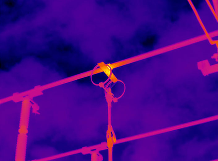 - 高壓線路上的磨損、材料疲勞或電纜破損往往都會導(dǎo)致故障。而由于電阻增加,這些問題通常都會導(dǎo)致溫度升高。通過使用熱成像技術(shù),對這些異常進(jìn)行早期檢測,可以簡單有效地防止高壓系統(tǒng)中因部件損壞而產(chǎn)生的電力故障。從而確保能源輸配持續(xù)不間斷。