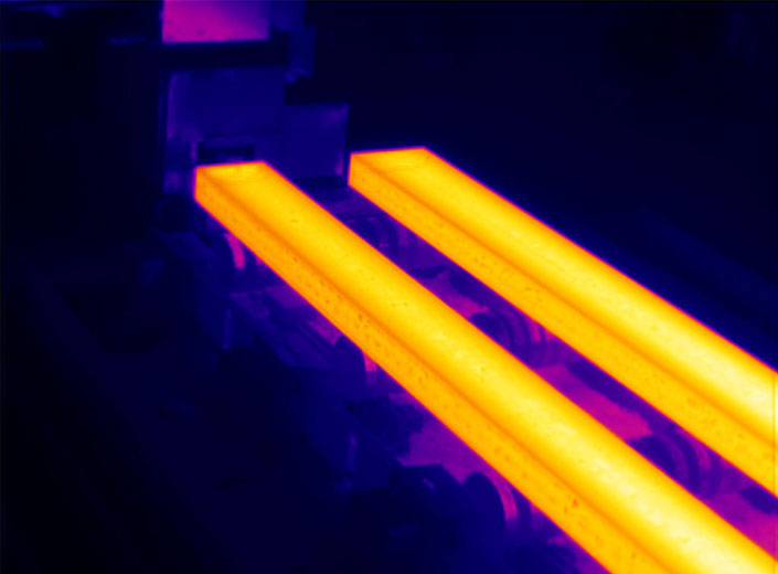 - 板坯的表面質(zhì)量好壞直接影響產(chǎn)品的軋制,板坯通常會出現(xiàn)表裂紋、氣泡等缺陷,這些缺陷部分會影響熱能的傳遞。使用熱像儀進(jìn)行板坯的溫度均勻性檢測可清晰發(fā)現(xiàn)缺陷點(diǎn),從而保證產(chǎn)品質(zhì)量。