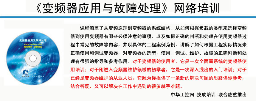 一、課程學(xué)習(xí): 本課程為變頻器使用、維護(hù)、應(yīng)用的培訓(xùn)課程,授課講師具有多年的工程實(shí)踐經(jīng)驗(yàn),總結(jié)了一般人普遍都會(huì)遇到的問(wèn)題或者使用不當(dāng)?shù)牡胤,有很?qiáng)的實(shí)用性和可參考性,堪稱(chēng)一套經(jīng)典的變頻器應(yīng)用與維護(hù)課程。