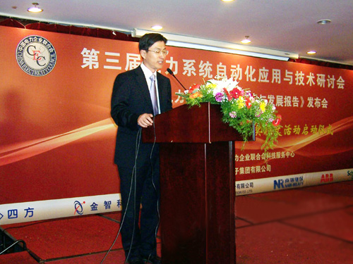 25日上午,由中國電力企業(yè)聯(lián)合會(huì)主辦,東方電子集團(tuán)協(xié)辦的“第三屆電力系統(tǒng)自動(dòng)化應(yīng)用與技術(shù)研討會(huì)”在煙臺(tái)召開,來自全國各地電系統(tǒng)的工程院院士、大學(xué)教授、科研所學(xué)者等近二百人匯集一堂,圍繞電力系統(tǒng)自動(dòng)化的現(xiàn)狀與問題,應(yīng)用與發(fā)展兩個(gè)方面展開技術(shù)交流。本次大會(huì)的主題是“充分挖掘電力系統(tǒng)自動(dòng)化的應(yīng)用潛力,提高電網(wǎng)運(yùn)行的安全與經(jīng)濟(jì)性”。據(jù)悉,這是近年來在我市舉辦的規(guī)格最高的電力行業(yè)專業(yè)學(xué)術(shù)會(huì)議。 在本次大會(huì)開幕上,東方電子集團(tuán)公司董事長、總經(jīng)理?xiàng)詈憷づc國家電網(wǎng)公司、中國電力報(bào)社、清華大學(xué)機(jī)電學(xué)院的領(lǐng)導(dǎo)一起為“2009年東方電子杯有獎(jiǎng)?wù)魑拇筚悺眴?dòng)儀式揭幕。